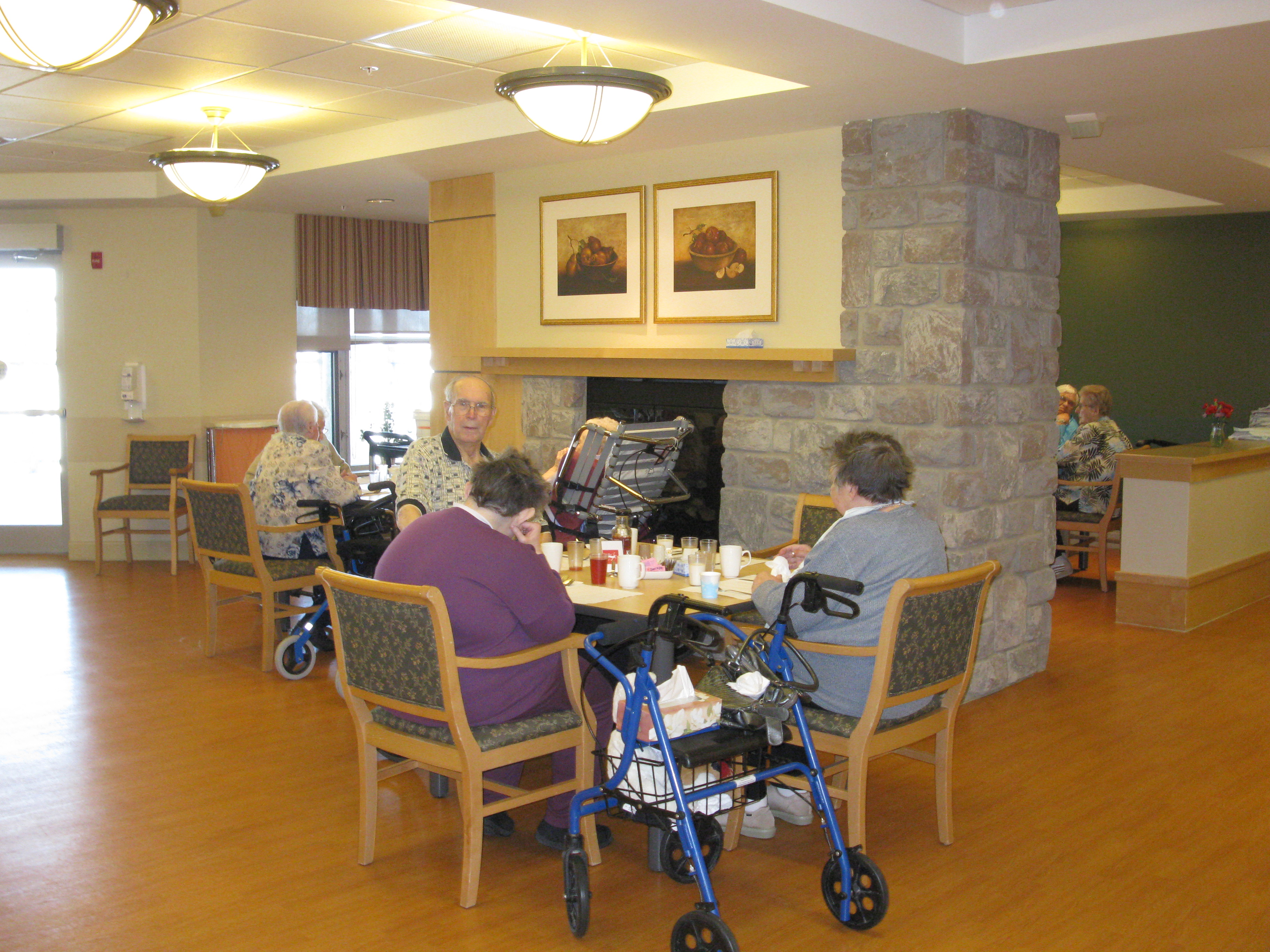 The three meals a day are supplemented with three snacks. All food is prepared on-site using state-of-the-art equipment and are served from the kitchenette in each resident home area. Meals are available for family and friends at a cost of $9.00 as approved through the Resident Purchase Agreement. Simply reserve through the front office.
