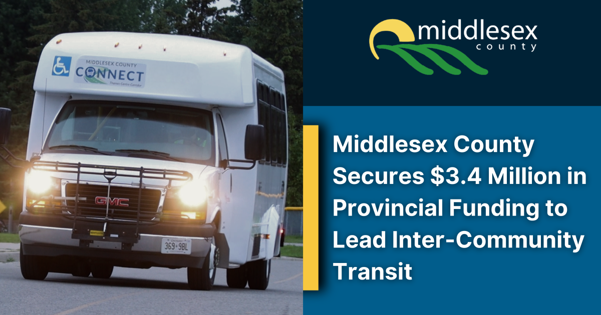 MIDDLESEX COUNTY, December 22, 2025 - Middlesex County is pleased to announce that it has received provincial approval for up to $3.4 million in funding through the Ontario Transit Investment Fund (OTIF) to support the continued operation and optimization of Middlesex County Connect inter-community transit services through March 2030.