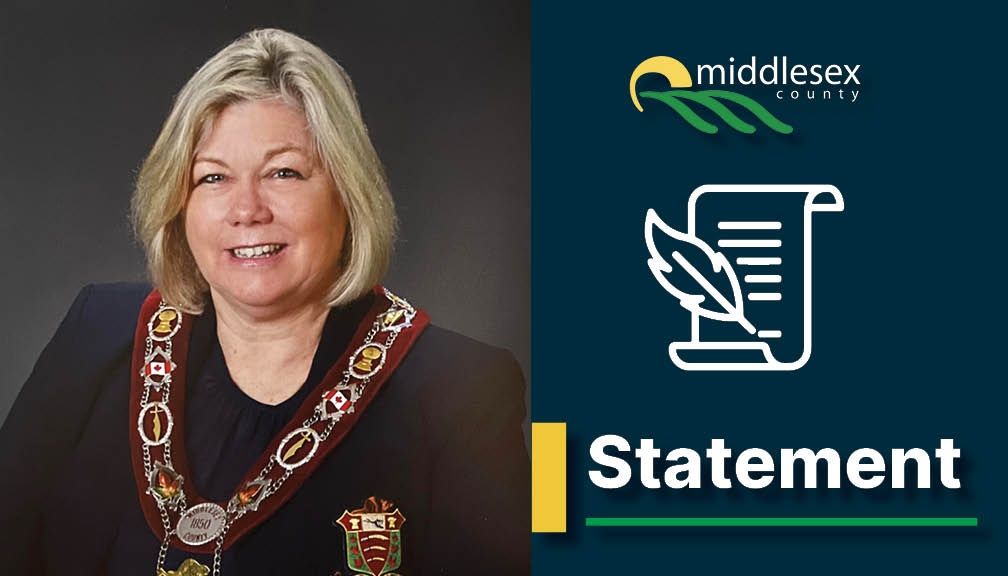 MIDDLESEX COUNTY: On May 26, 2022, Warden Warwick issued the following statement on behalf of County Council and the Corporation of Middlesex County regarding Mayor Ed Holder’s decision to not seek re-election:
