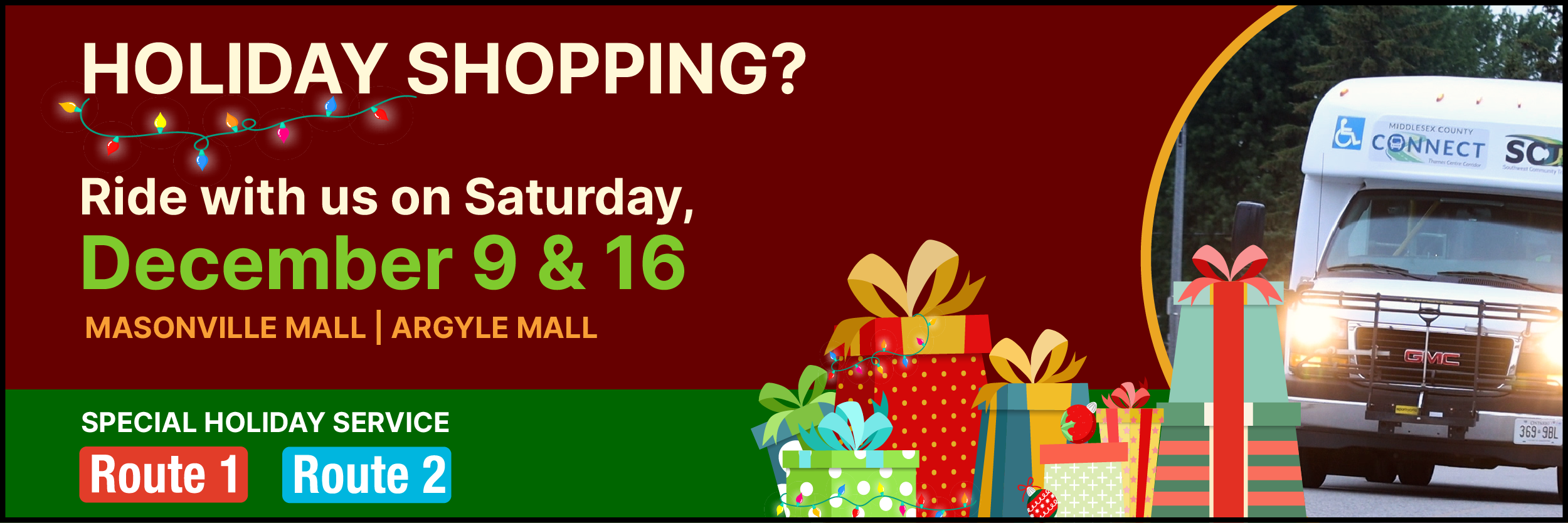 Middlesex County Connect's special holiday service on Saturdays, Dec 9th and 16th, 2023.